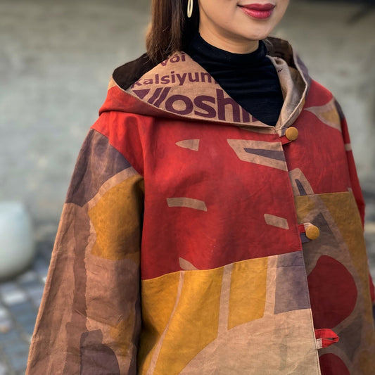 【古布リメイクハーフコート】のぼり旗 柿渋染め ジャケット