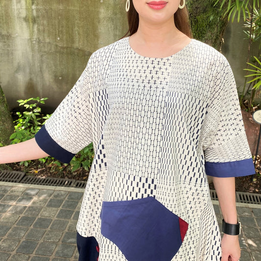 【久留米織Aラインチュニックワンピース】前ファスナー