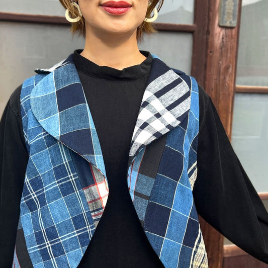 【古布リメイク庄内刺し子ベスト】作家一点物