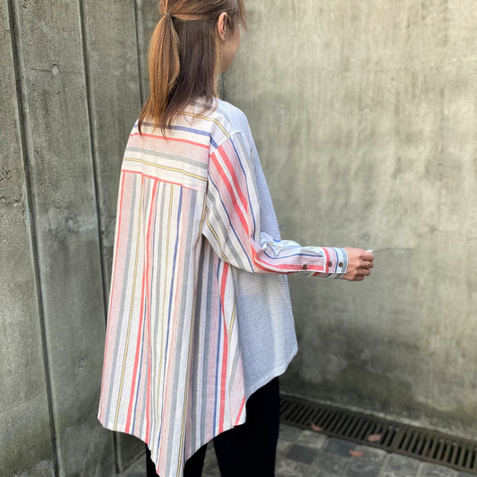 【古布アレンジチュニック】浜松木綿 大きいサイズ 春夏秋 ロングブラウス