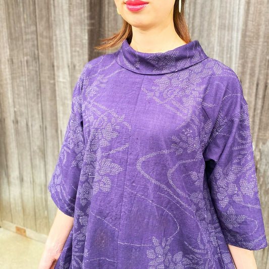 【大島紬アレンジ襟付きワンピース】高木ふくえ作 10.12.2