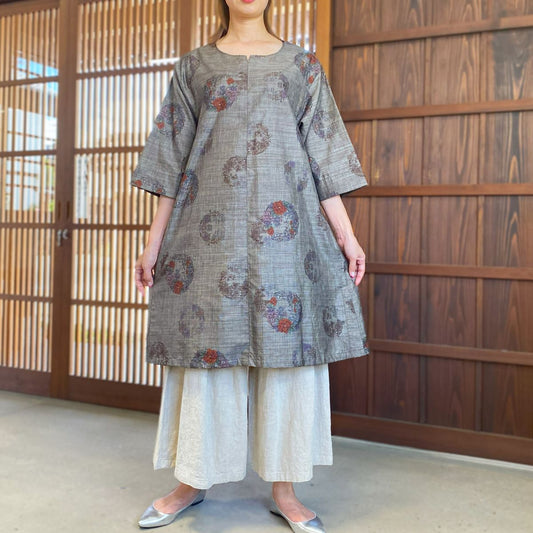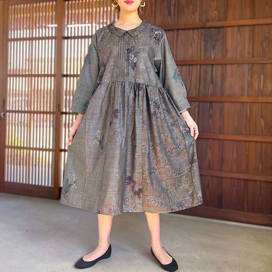 【泥大島紬アレンジ襟付きワンピース】9.20.7