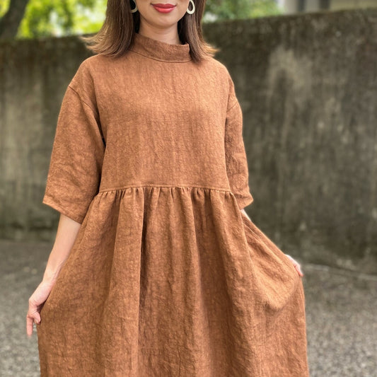 売り切れ【柿渋染めワンピース】京都産生地 手もみ