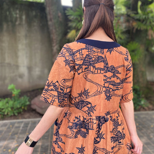 【柿渋染め浴衣ワンピース】ふんわり軽い 涼しい