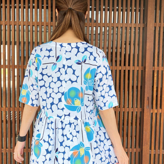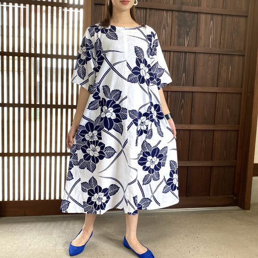 【浴衣リメイクワンピース】花柄 コクーンシルエット