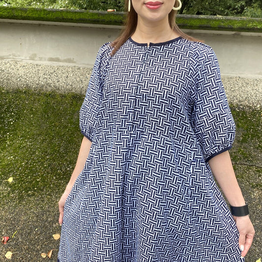 【浴衣リメイクふんわり袖ワンピース】一点物 幾何学模様