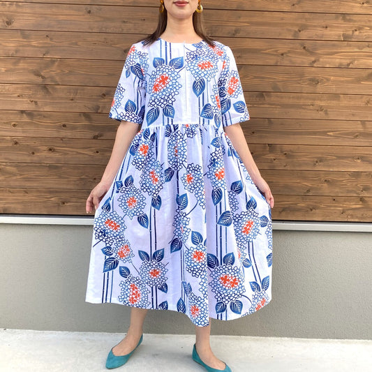 【浴衣リメイクワンピース】紫陽花 あじさい