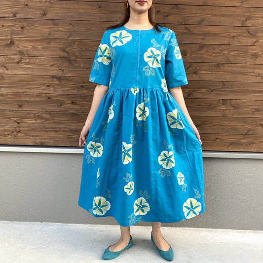 売り切れ【浴衣リメイクワンピース】朝顔柄