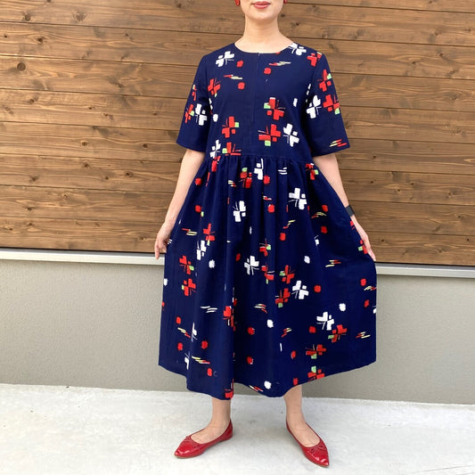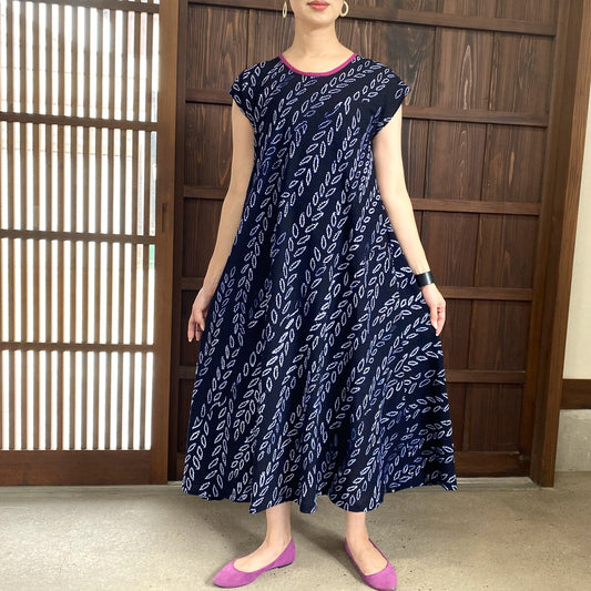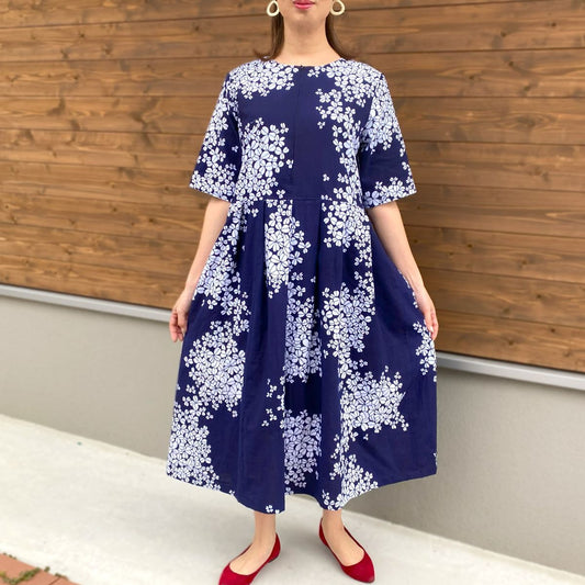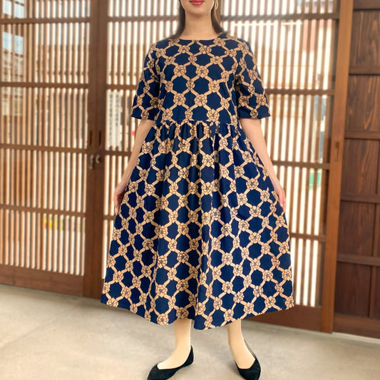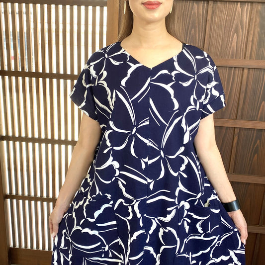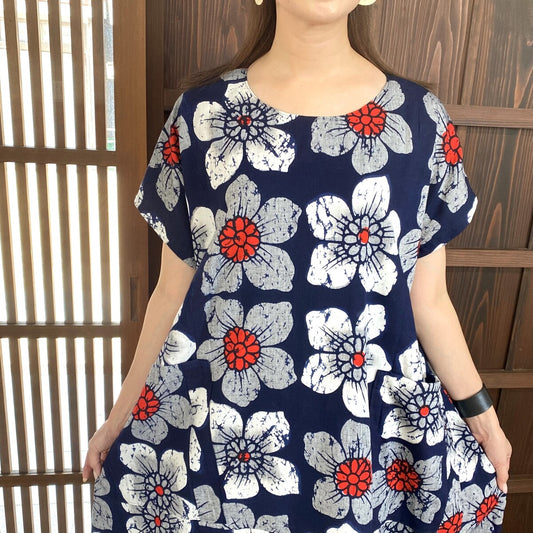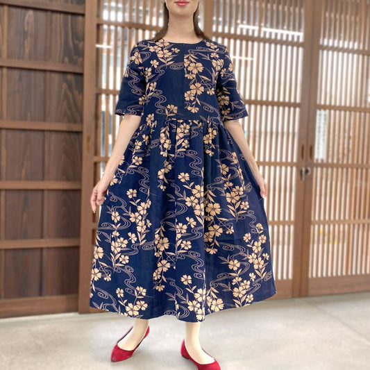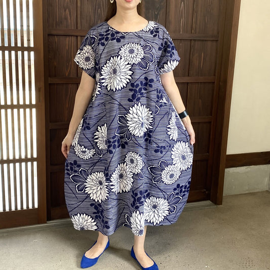 売り切れ【浴衣リメイクワンピース】紺 花柄