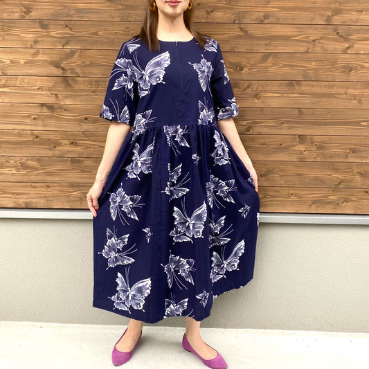 売り切れ【浴衣リメイクワンピース】蝶々 濃紺