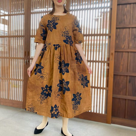 売り切れ【柿渋染め浴衣アレンジワンピース】花柄