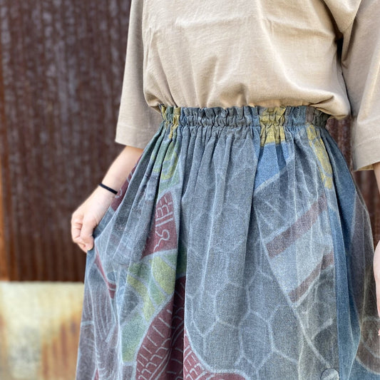 [Old cloth remake ink-dyed skirt] One-of-a-kind creative clothing Big catch flag Spring/Summer/Autumn/Winter Made in Japan Retro cute
