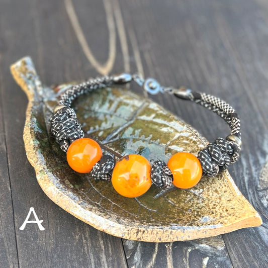 [Handmade Japanese Bracelet] One-of-a-kind piece by the artist, antique crepe, natural stone