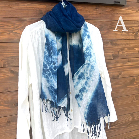 [Indigo dyed stole] Indigo dyed Japan Blue Linen cotton blend uneven dyeing