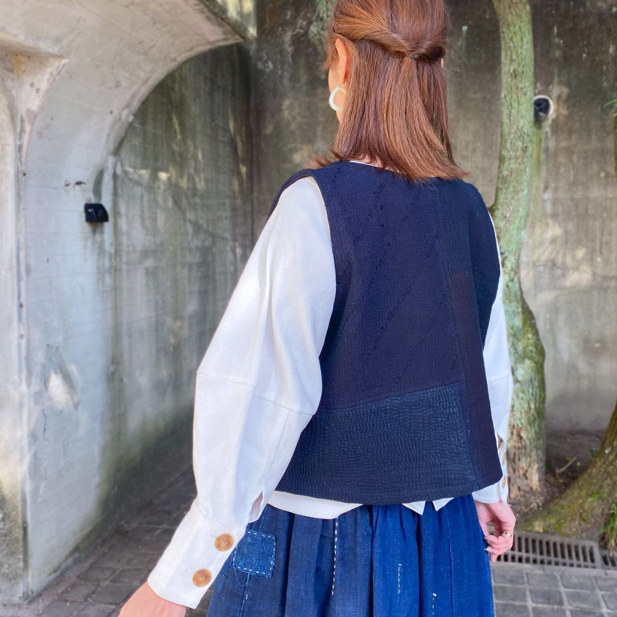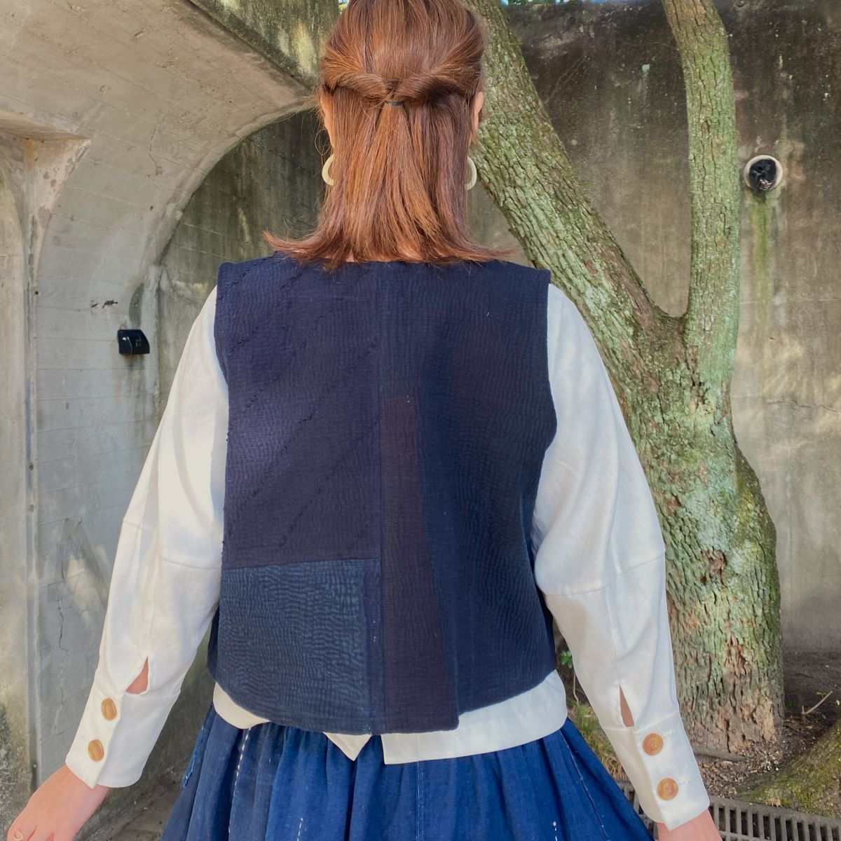 【古布リメイク庄内刺し子ベスト】作家一点物