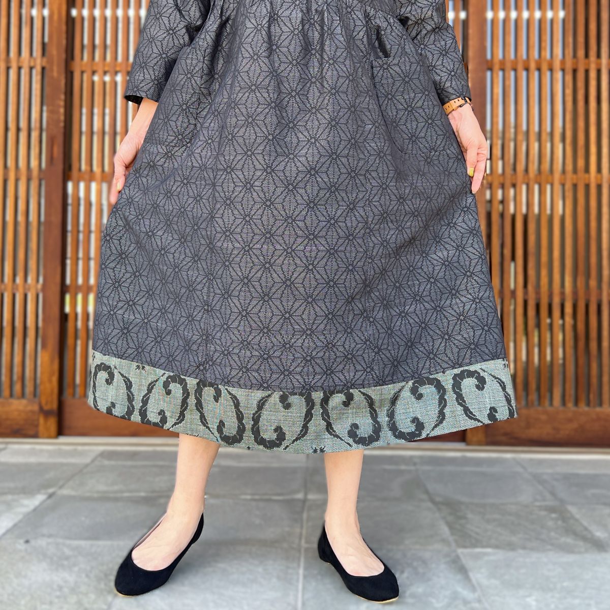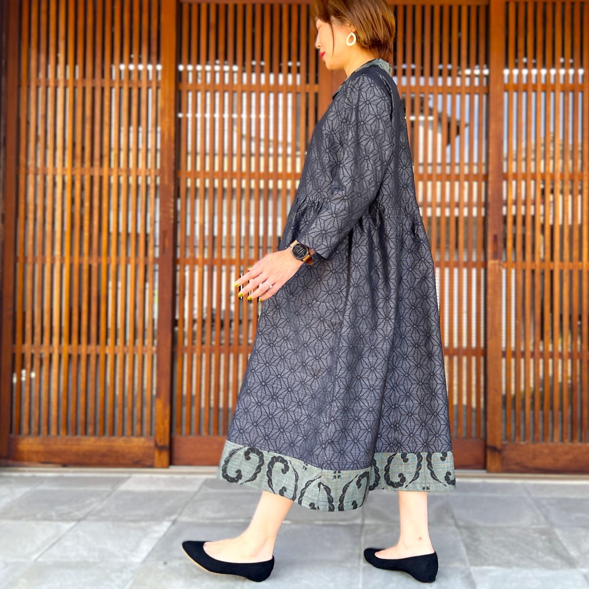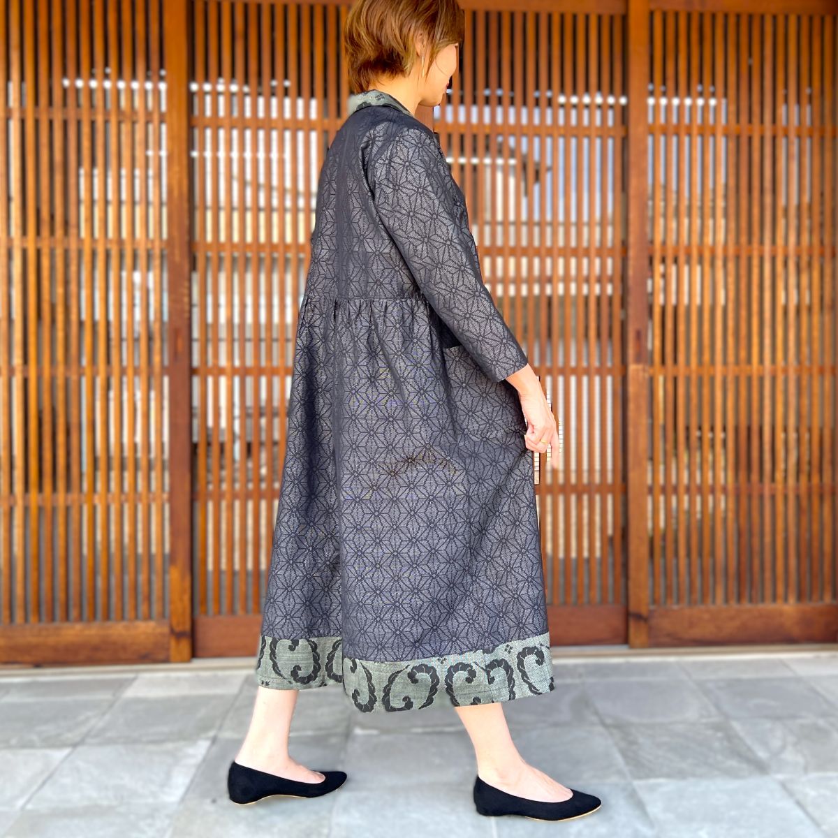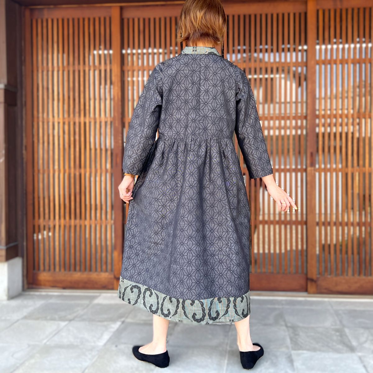 【大島紬アレンジ襟付きワンピース】高木ふくえ作 10.12.2