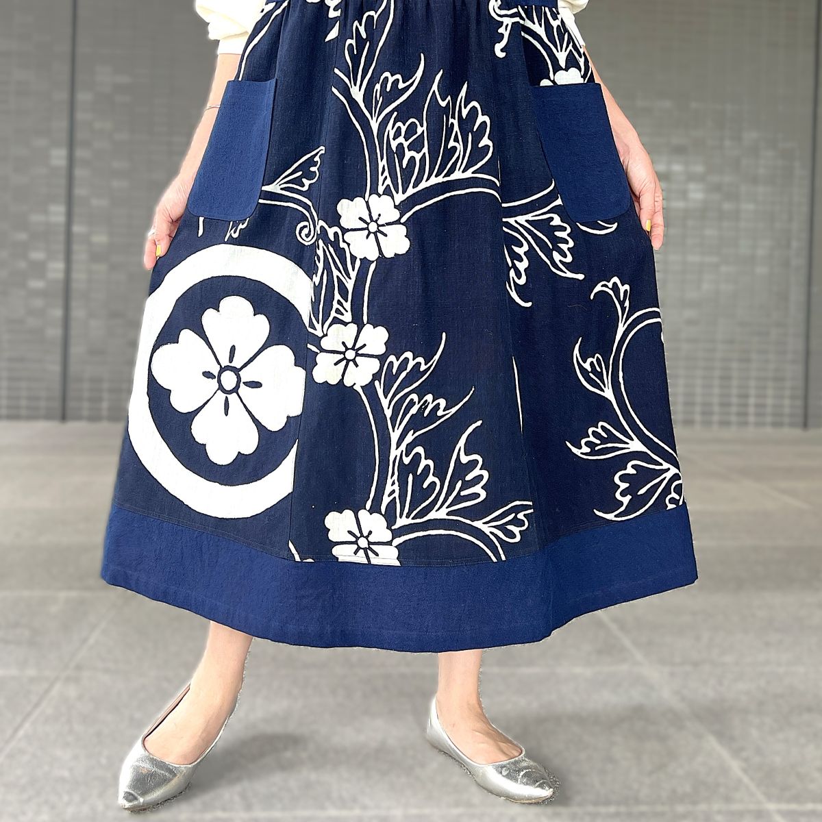 素材:綿100% 古布藍染め筒描き、藍染め
