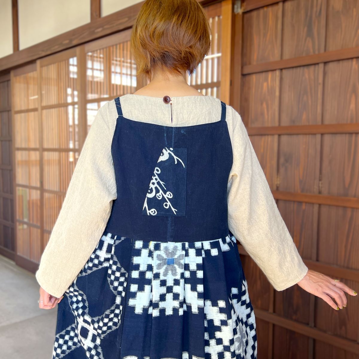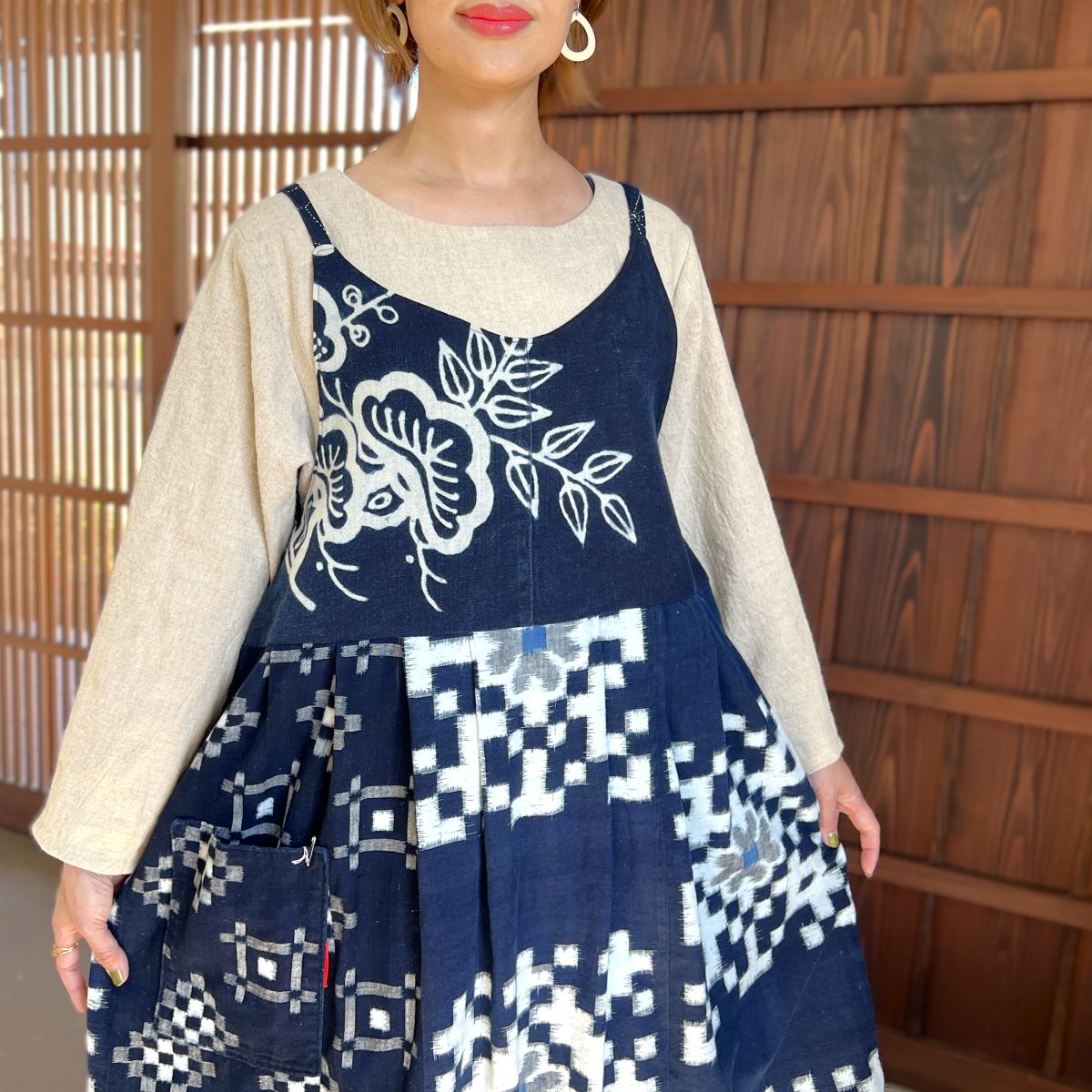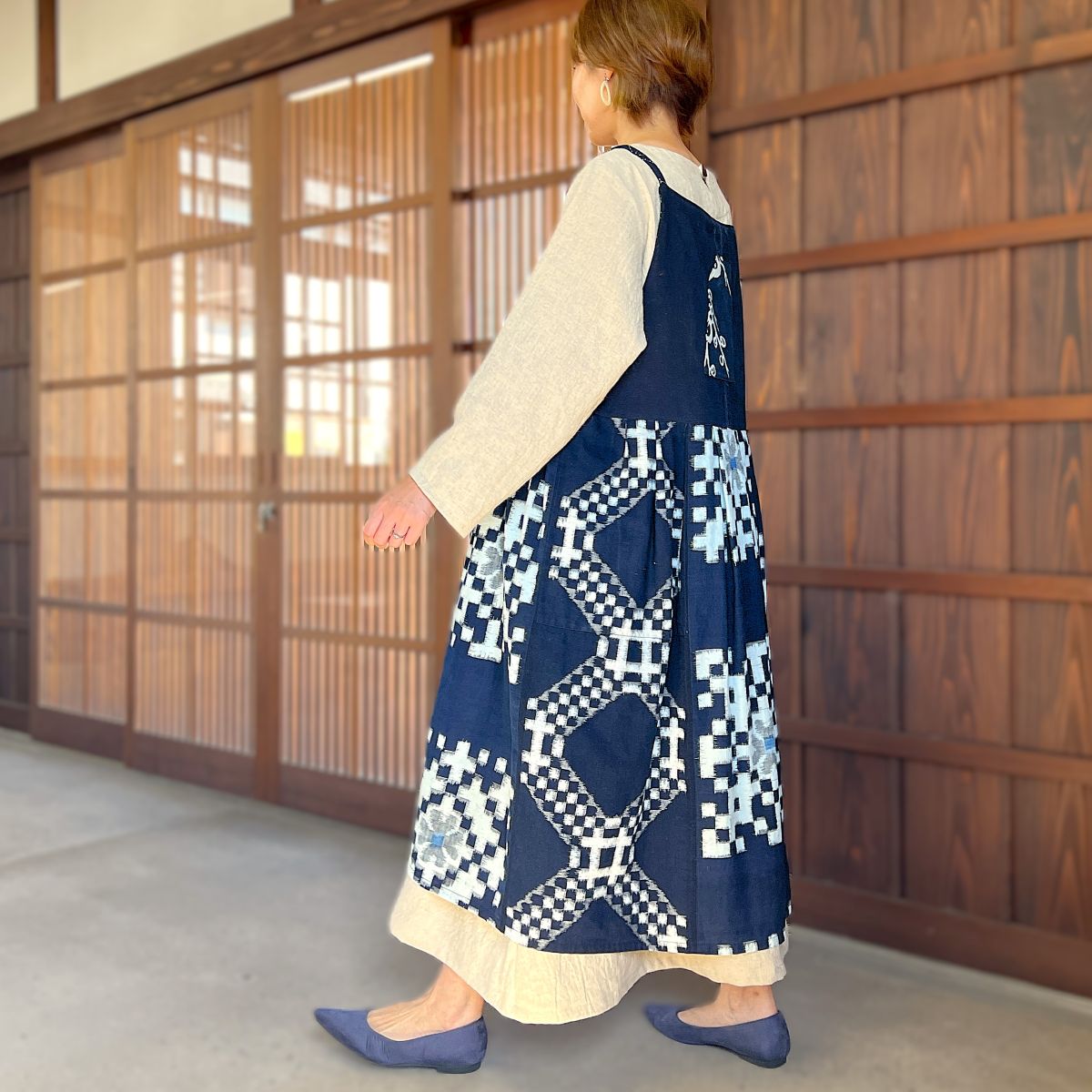 華奢な肩紐、ゆったり幅のタックから広がるシルエットが可愛い一枚です。