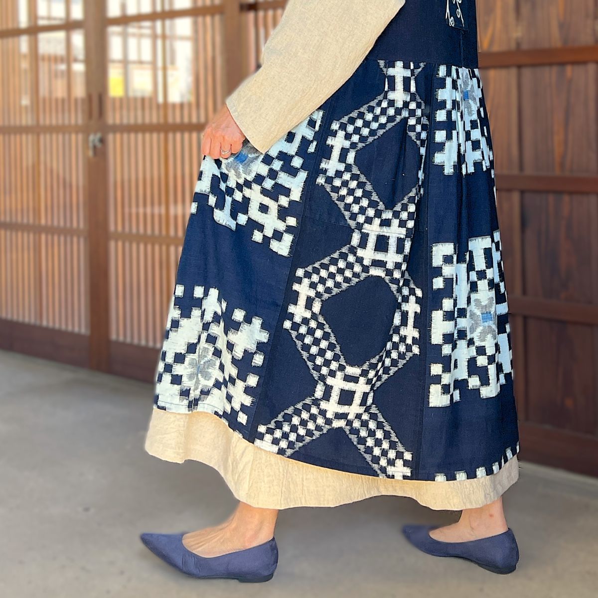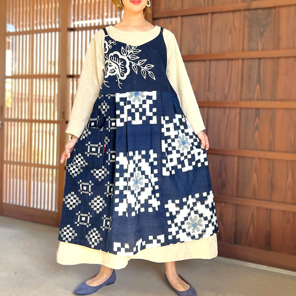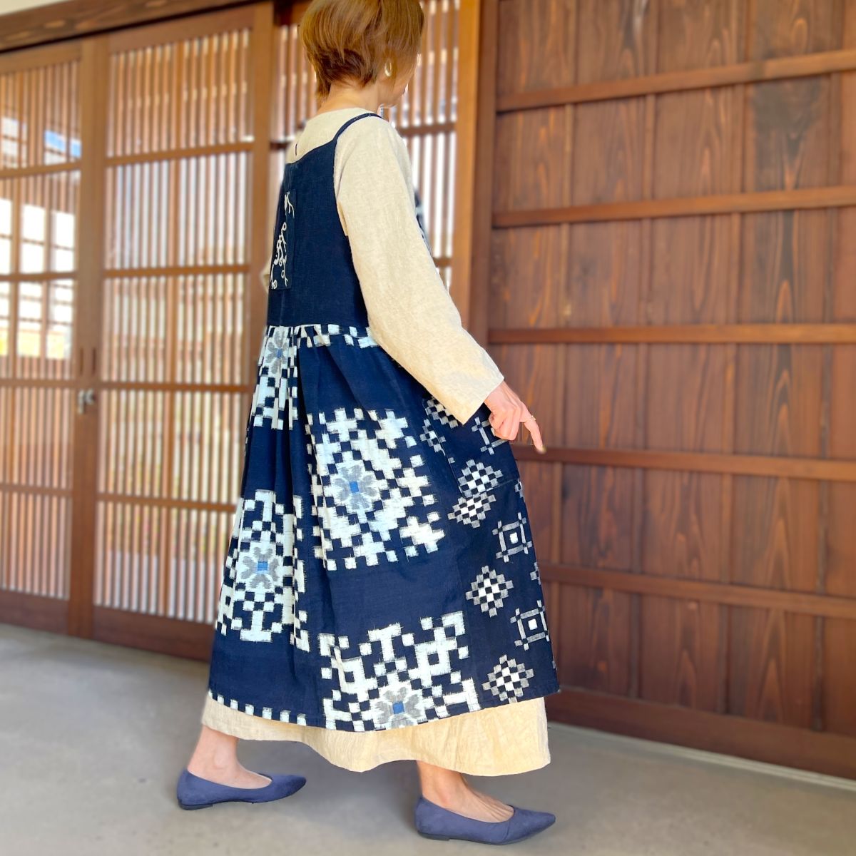 華奢な肩紐、ゆったり幅のタックから広がるシルエットが可愛い一枚です。