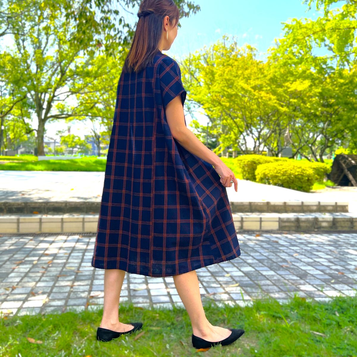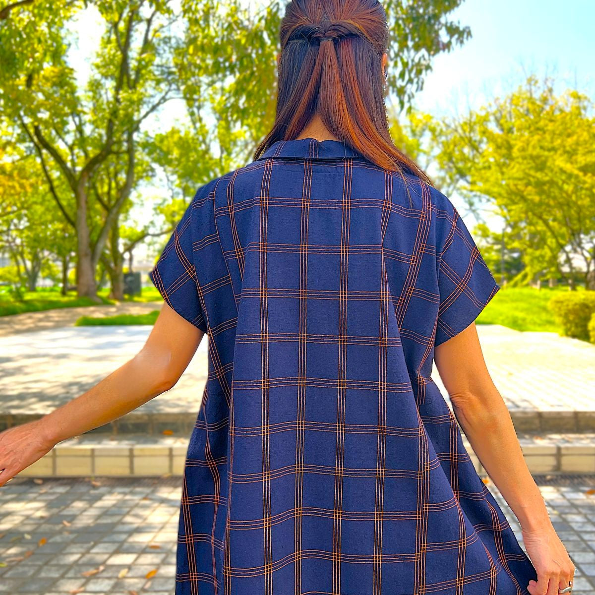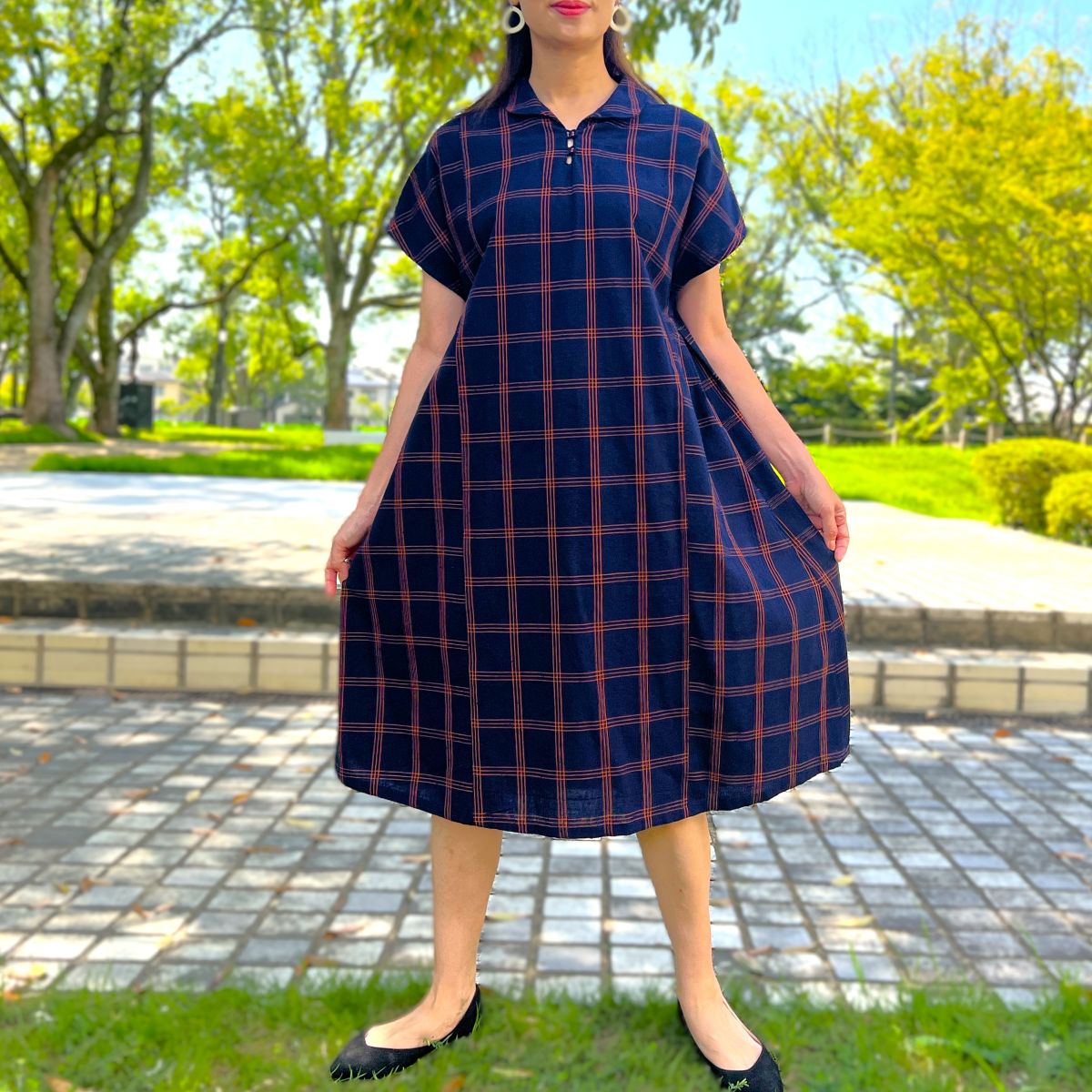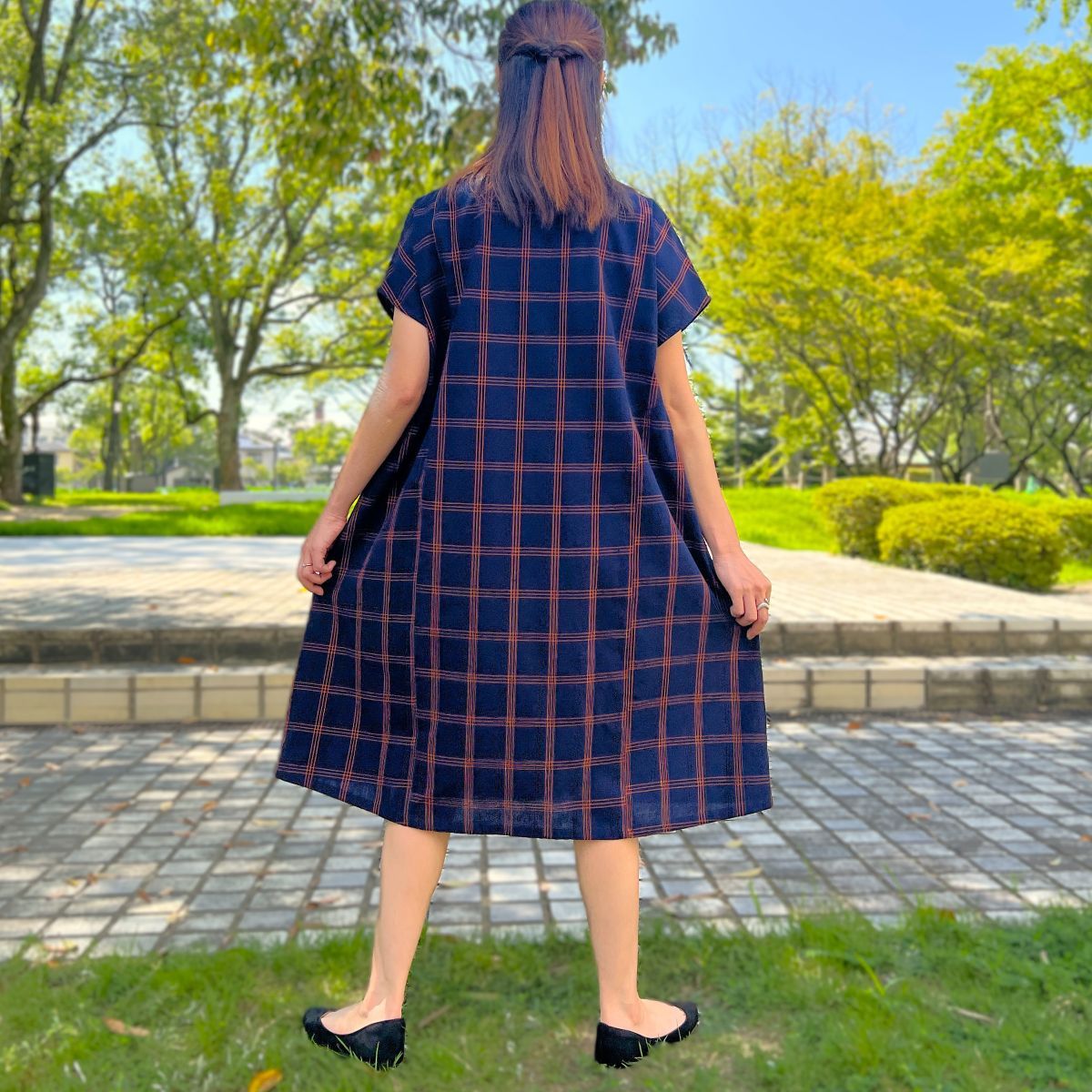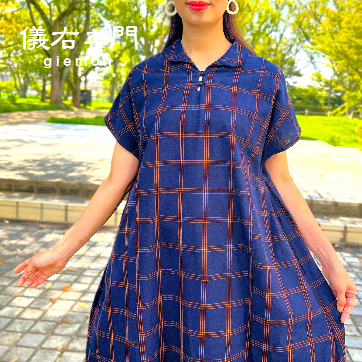 儀右ヱ門【久留米絣ワンピース】格子 Y2169