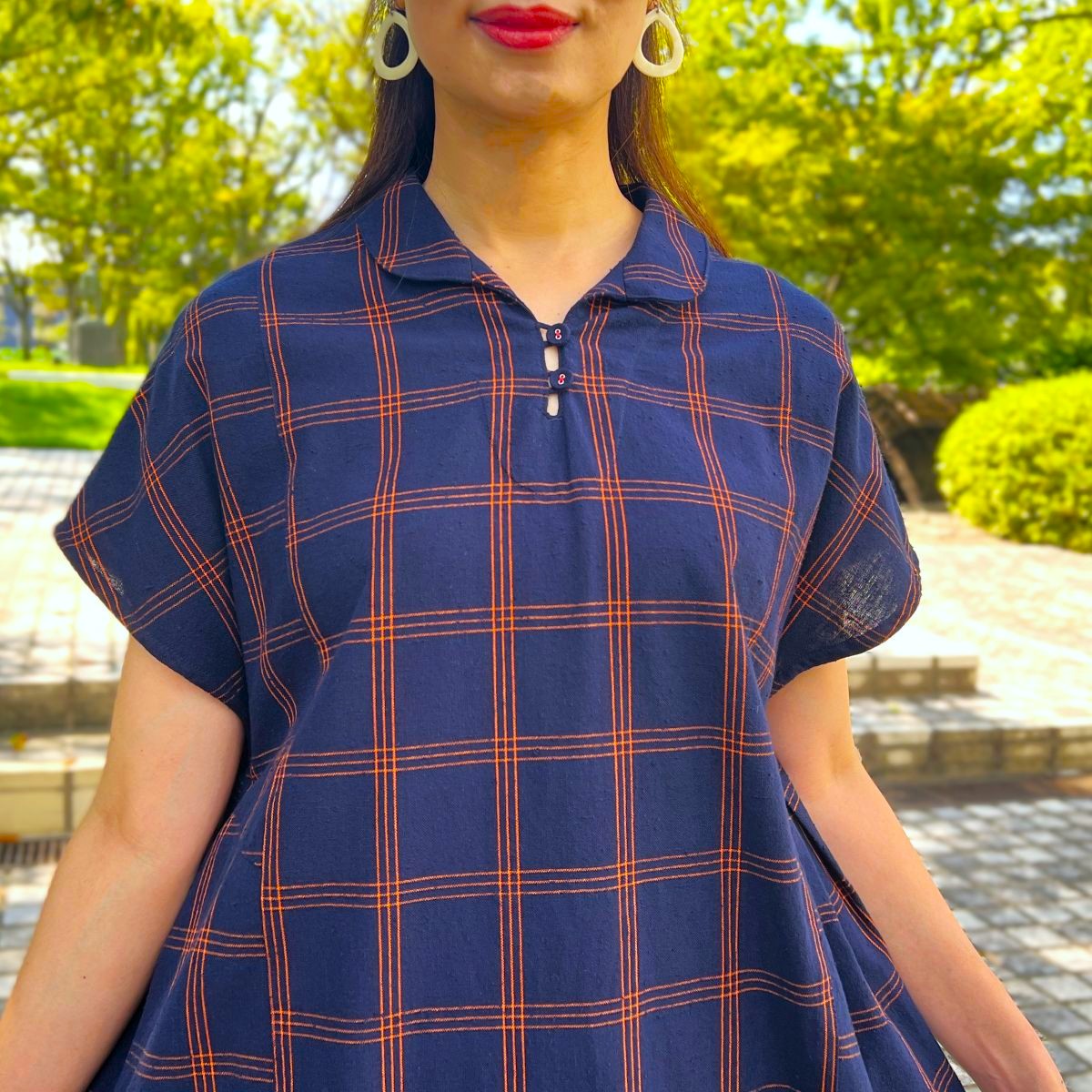 また、丸い衿が可愛らしさをプラスしてくれます。