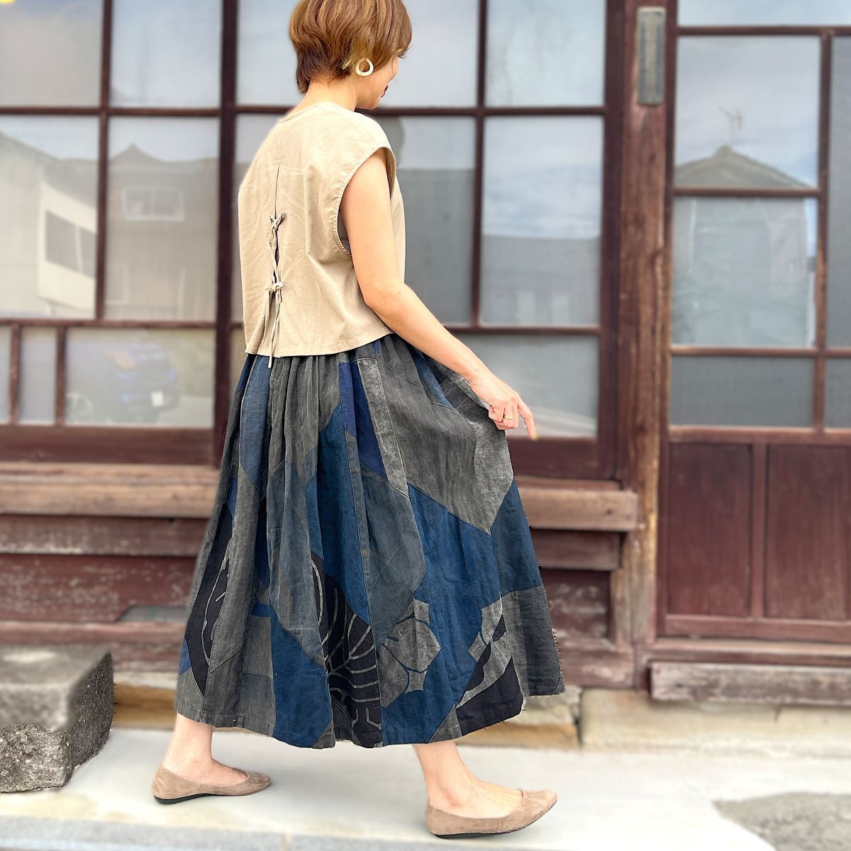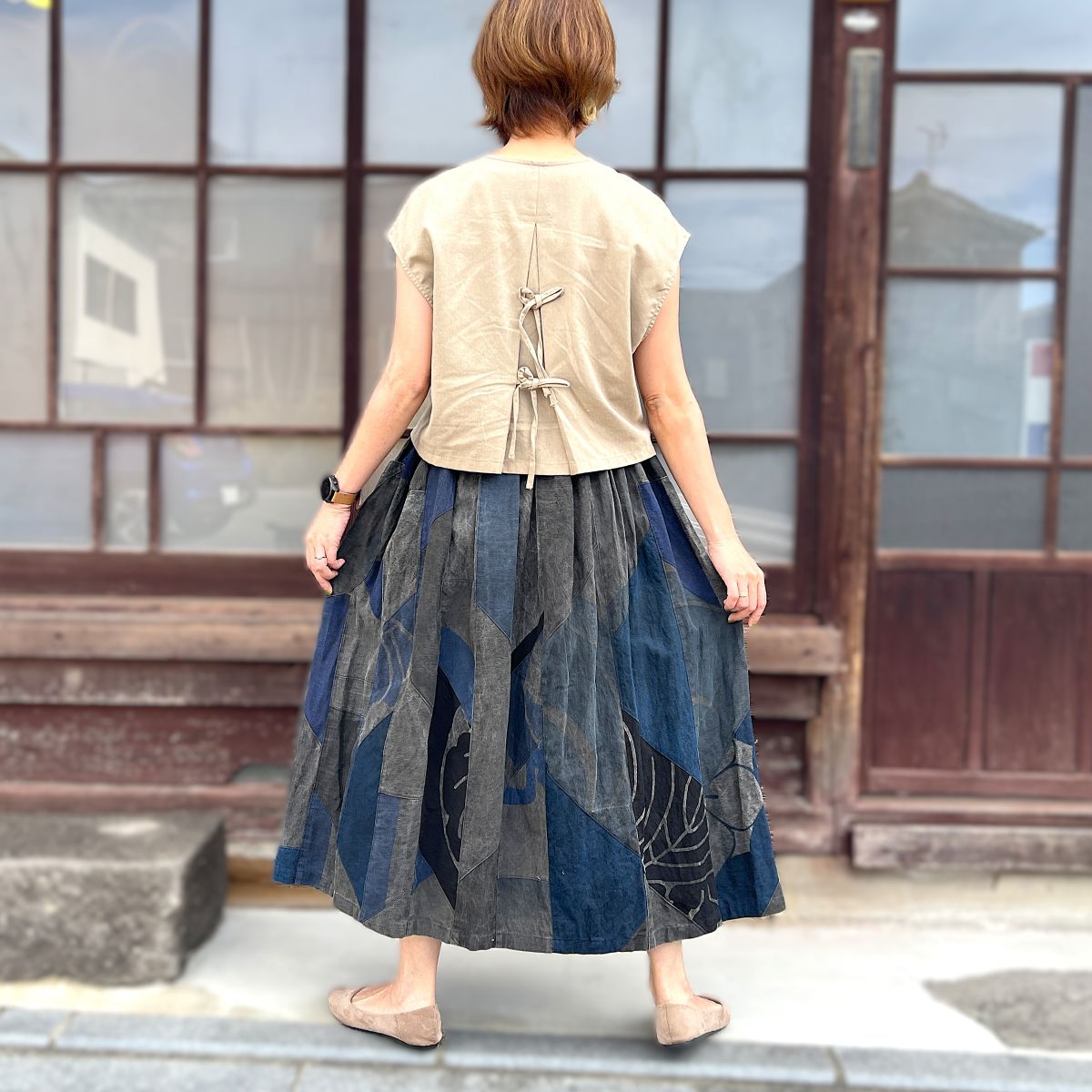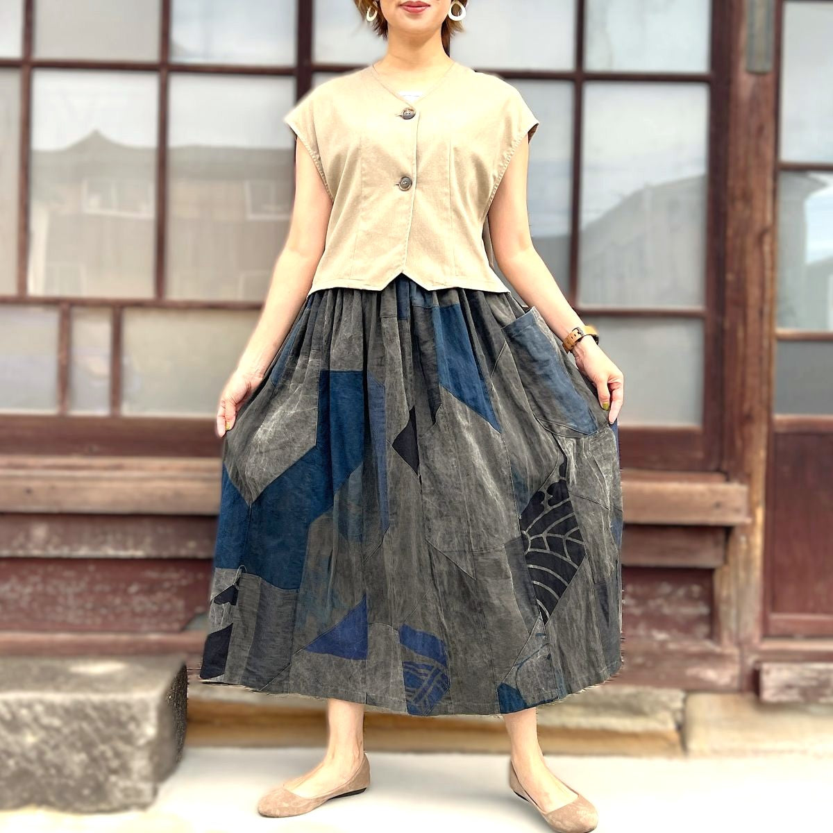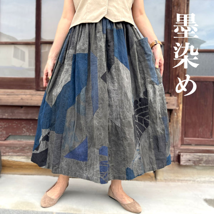 【古布アレンジパッチワークスカート】MKSK